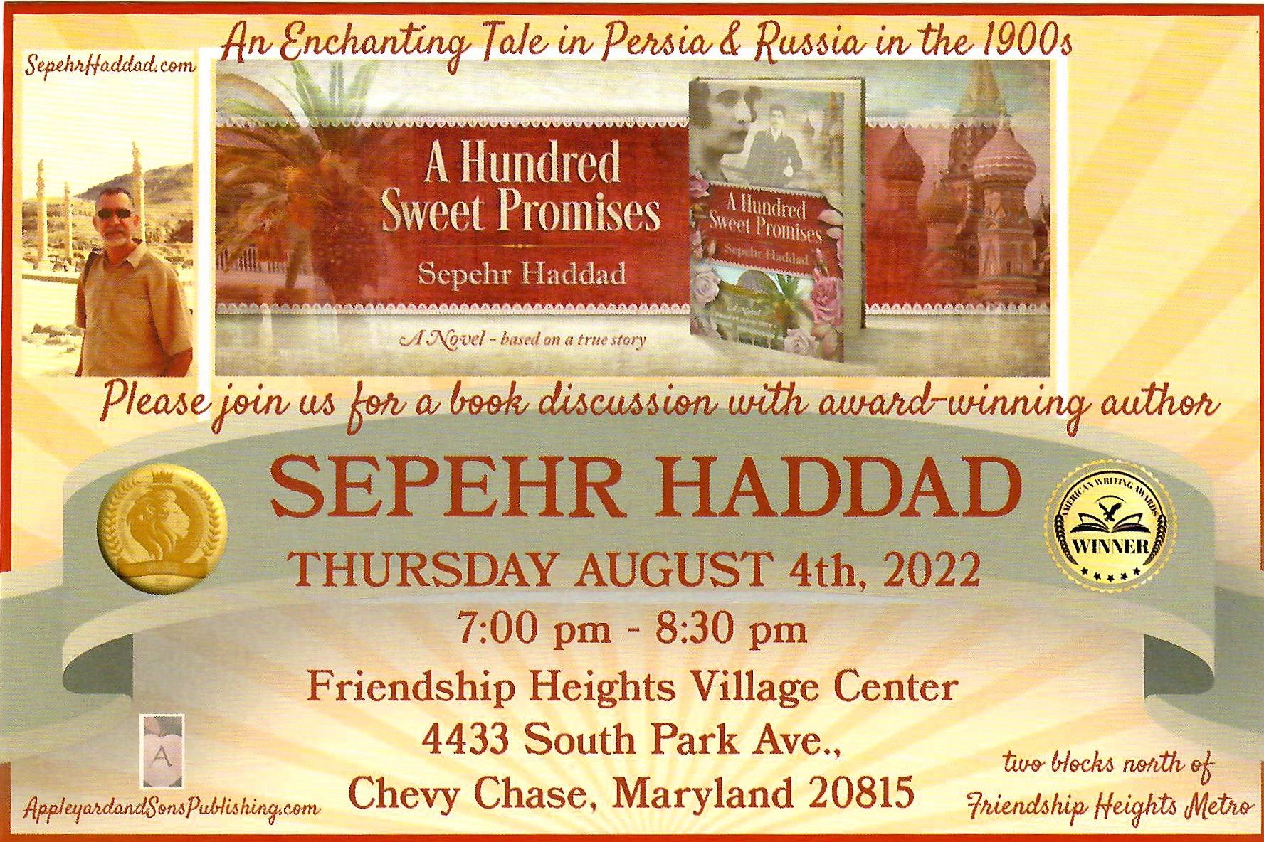 Author Sepehr Haddad will be appearing at the 2023 LA Times Festival of Books @ the Farhang Foundation Booth #949 on Saturday, April 22nd from 12:00 pm to 2:00 pm at the University of Southern California. The event is free to the public.